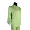 Kabátik s golierom má vpredu zapínanie na gombíky, na pravej bočnej strane vrecko a dlhý rukáv. Nohavice sú rovného strihu, v páse majú po celom obvode 1cm širokú gumu, ktorá sa dá prispôsobiť.